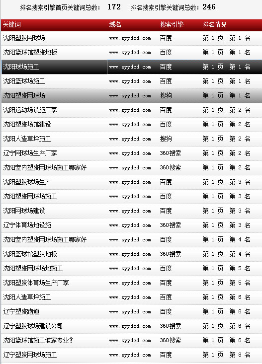關(guān)鍵詞“沈陽(yáng)塑膠網(wǎng)球場(chǎng)”在百度排名:第1頁(yè)第1名