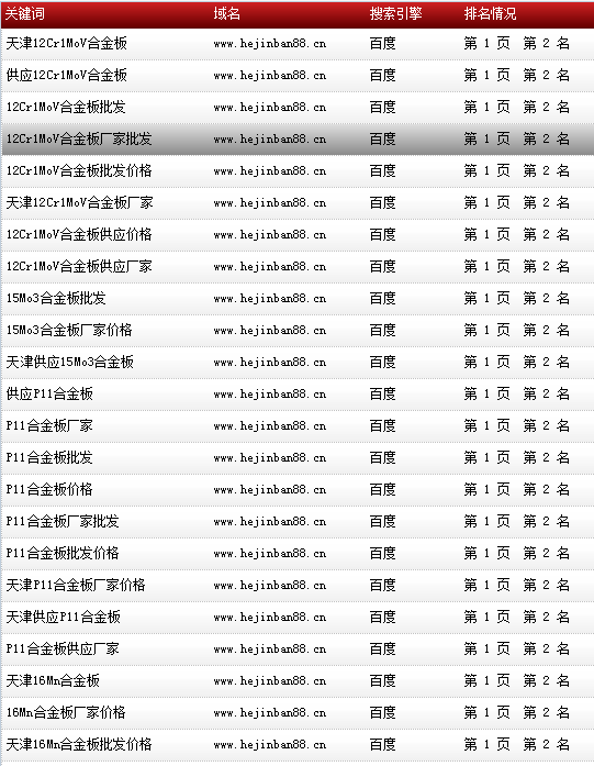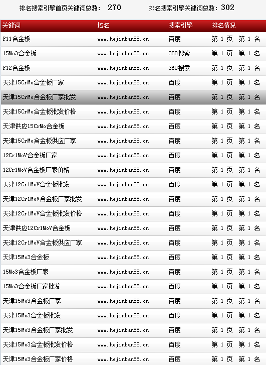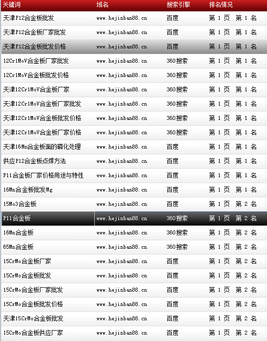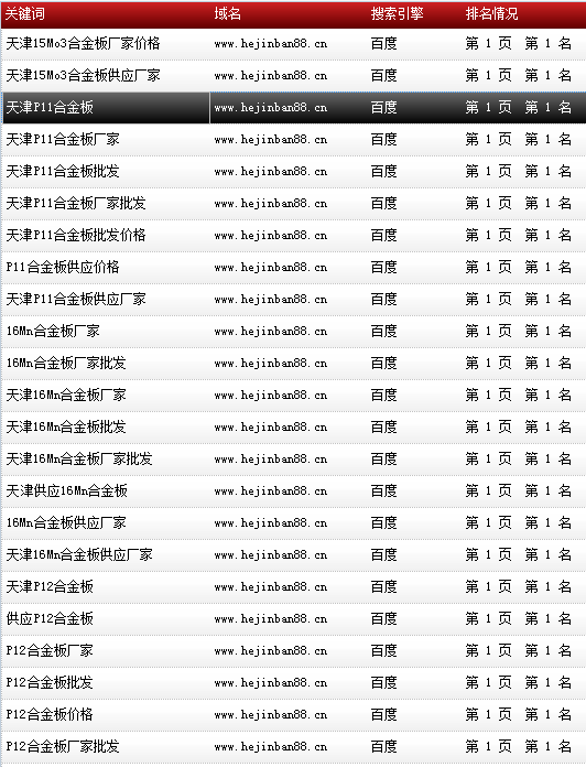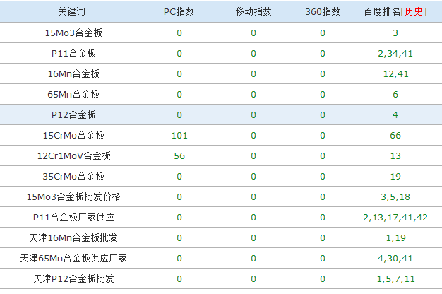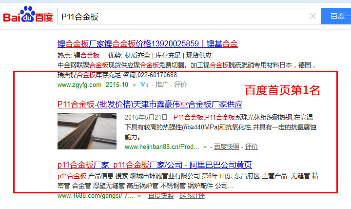 關(guān)鍵詞“P11合金板”在百度排名:第一頁第一名!