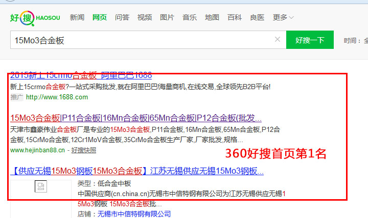 關(guān)鍵詞“15Mo3合金板”在好搜排名:第一頁第一名!
