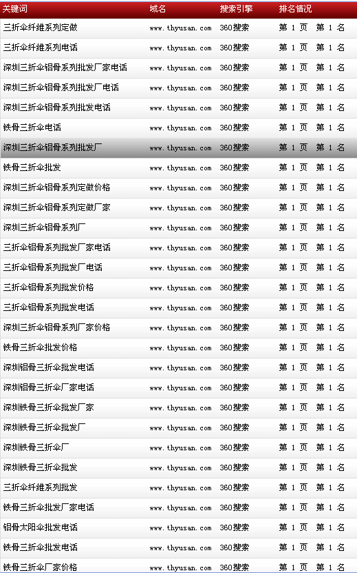關(guān)鍵詞“三折傘定制“在好搜排名:首頁第一名