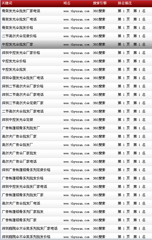 各關(guān)鍵詞在各大搜索引擎排名情況: