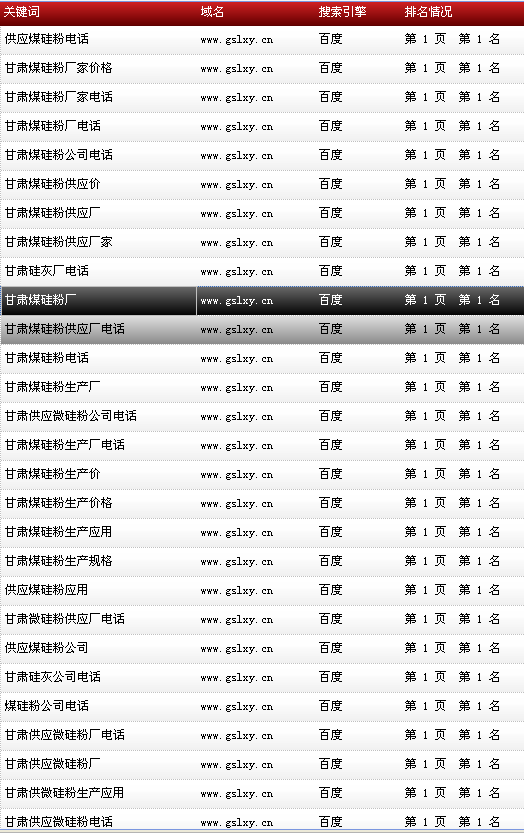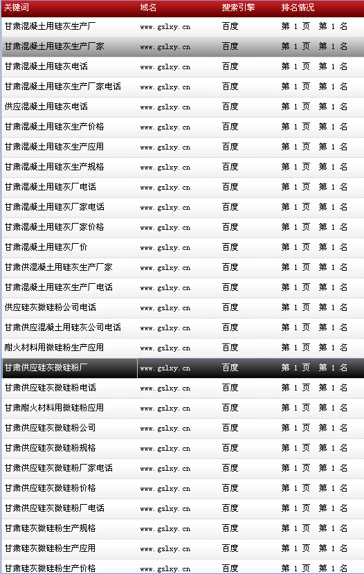 關(guān)鍵詞“甘肅硅灰微硅粉”在百度排名:首頁(yè)第1名