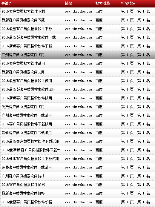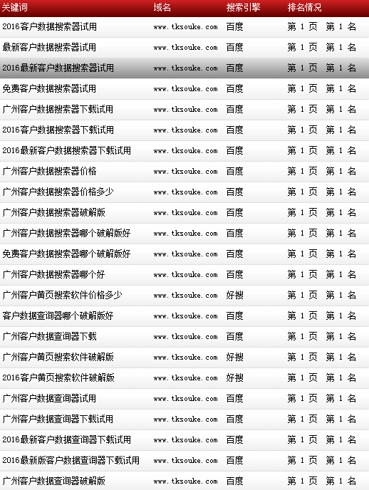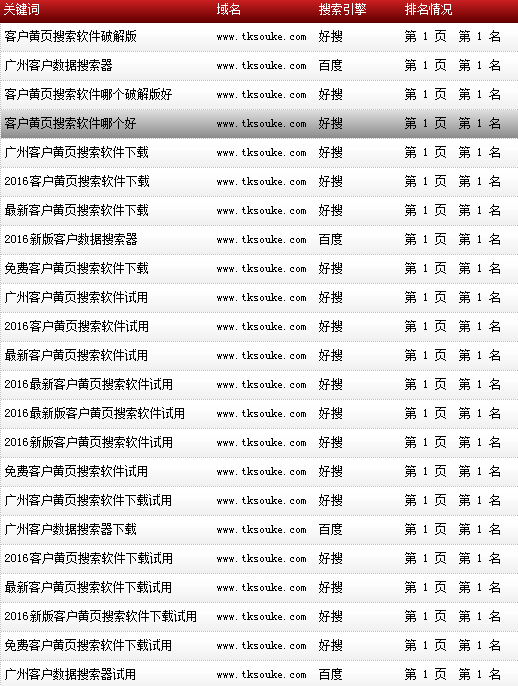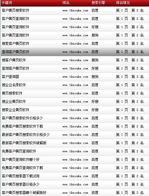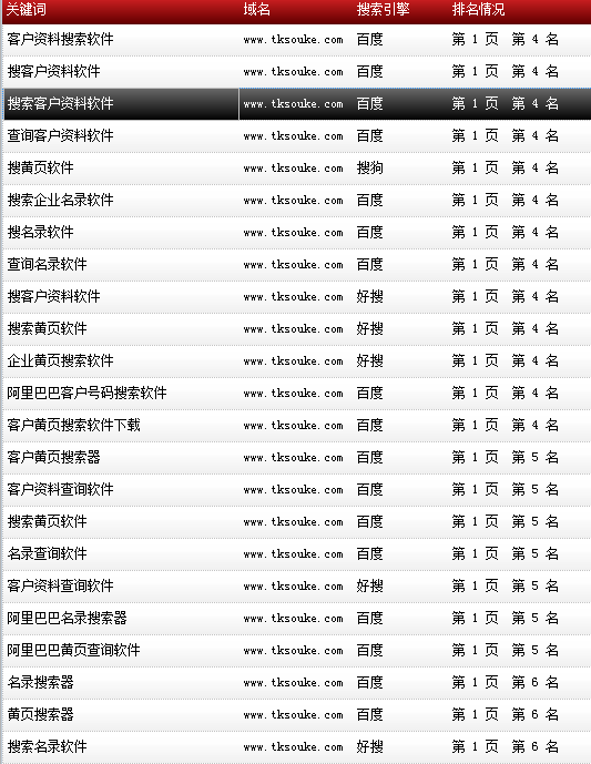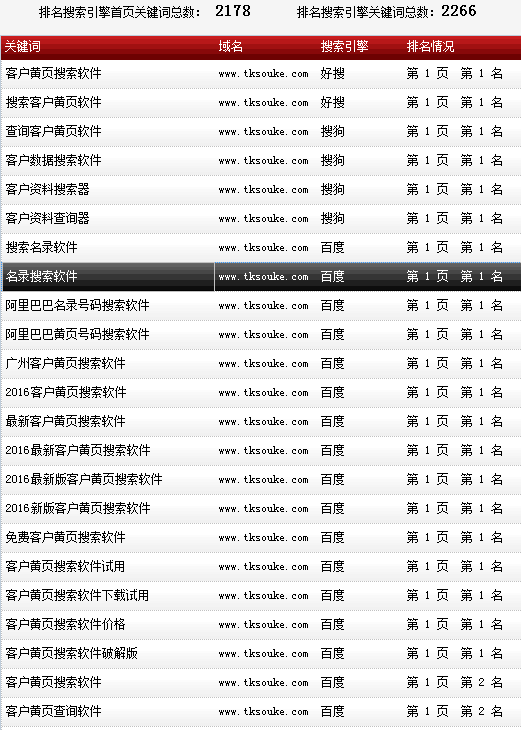 關(guān)鍵詞“名錄搜索軟件 ”在百度排名:首頁第一名!