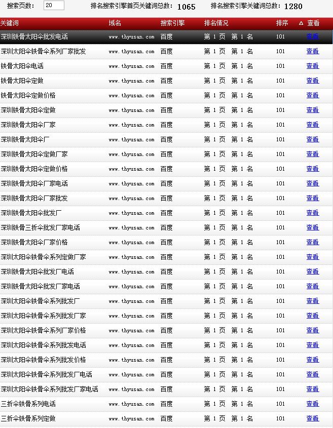 各關(guān)鍵詞在各大搜索引擎排名情況: