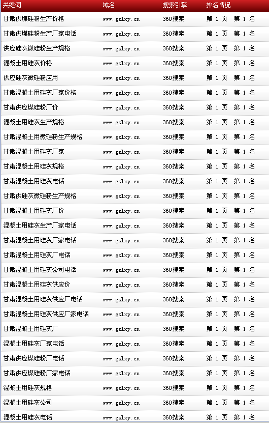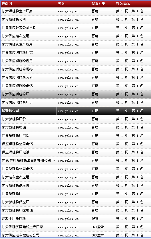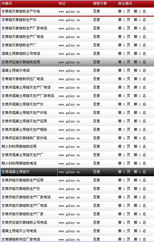 關(guān)鍵詞“甘肅硅灰微硅粉”在百度排名:首頁(yè)第1名