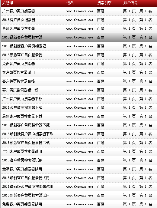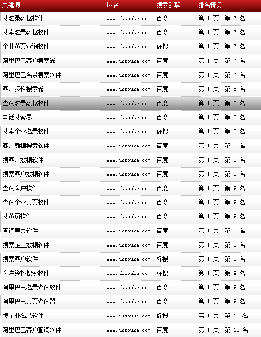 關(guān)鍵詞“名錄搜索軟件 ”在百度排名:首頁第一名!