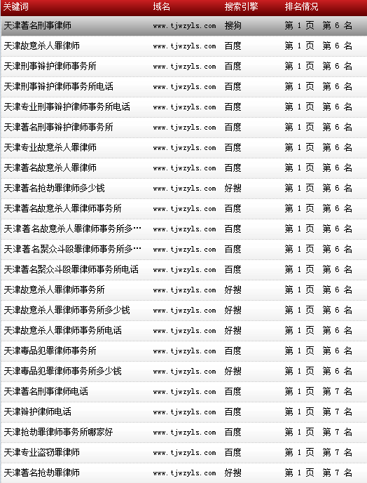 各關(guān)鍵詞在各大搜索引擎排名情況: